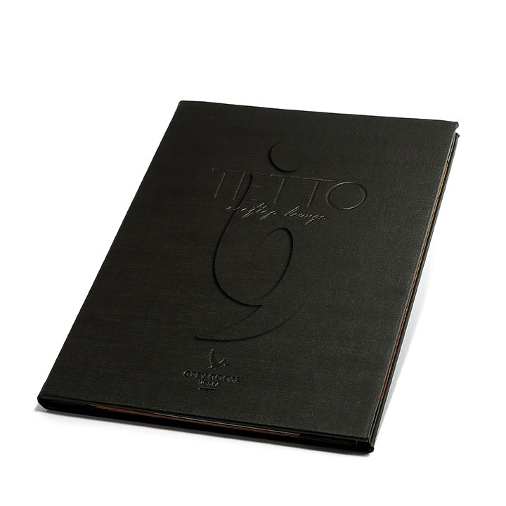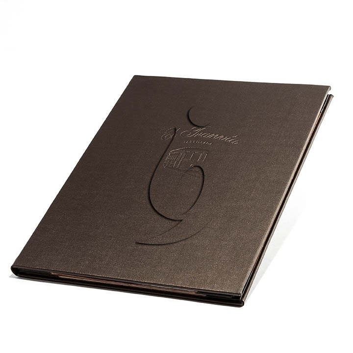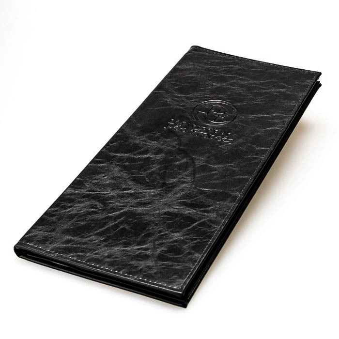 De excelente qualidade e com a mesma sofisticação e elegância dos modelos em couro natural, os cardápios em couro sintético especial também são peças únicas para cada cliente. Recomendado para produção de cardápios clássicos e cartas de vinhos, os modelos em couro sintético especial possuem um diferencial: tornam-se mais duráveis por apresentar acabamento acetinado e permite excelente gravação em baixo relevo. Além disso, esse tipo de cardápio admite personalização em Silk Screen, costuras especiais, acabamento externo e outros detalhes.