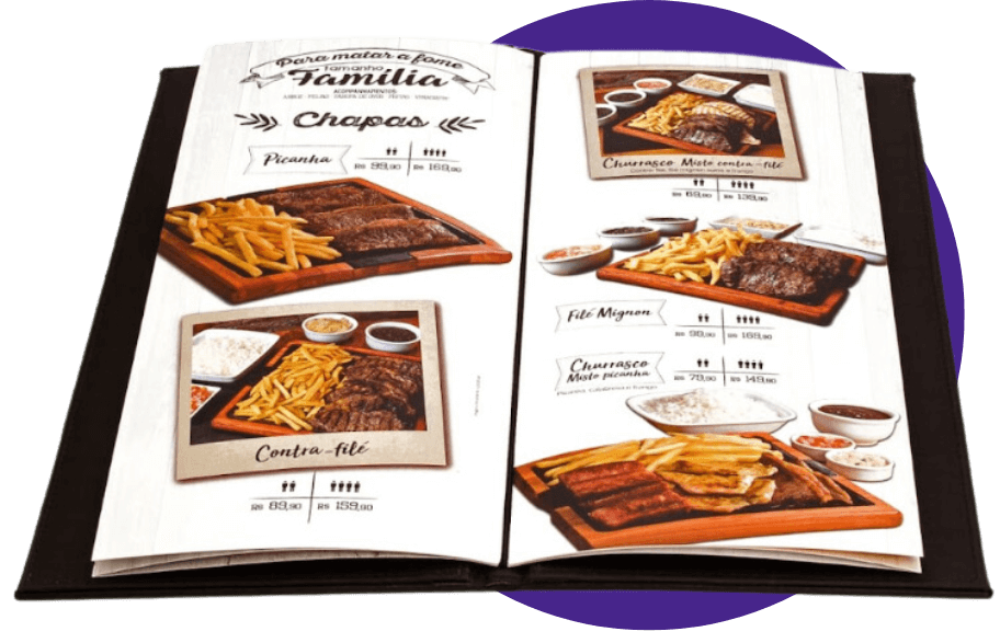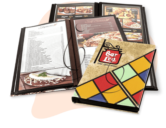 Além disso, podemos criar um modelo único, totalmente exclusivo, feito com base nas suas ideias e na nossa experiência em criação e impressão de cardápios para mais de 35.000 estabelecimentos de todo o país.